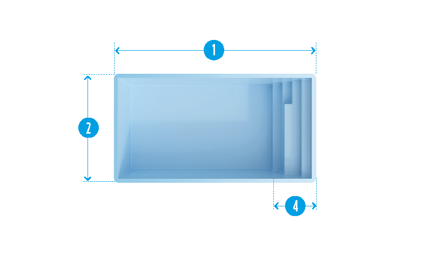 Le modèle Capitole 5 est une piscine à fond plat qui propose une banquette immergée et des dimensions particulièrement compactes : de forme rectangulaire, le bassin mesure 5 m de longueur et 2,7 m de largueur.