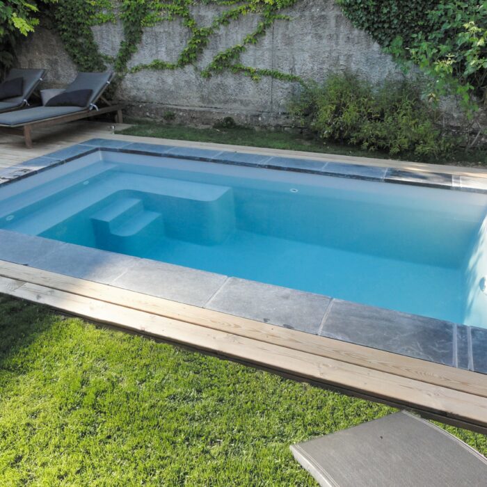 Cette piscine coque compacte en polyester de moins de 10 m² dispose de dimensions de rêve pour s’intégrer dans les plus petits espaces. De par sa taille réduite, elle est également de facto moins gourmande en eau et moins énergivore que ses grandes soeurs. Dernier avantage et non des moindres de la mini piscine est de permettre aux particuliers d’accéder à une piscine un prix réduit comparé aux modèles standards de piscines à coques.
